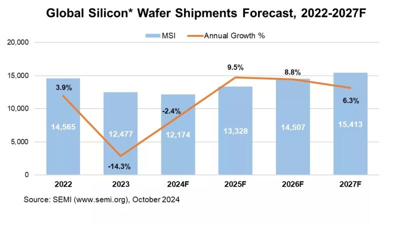 Пандемия с её ажиотажным спросом на электронные компоненты стала локальным пиком активности для рынка кремниевых пластин, но после 2022 года спрос на них продолжал снижаться. В прошлом году он опустился на 14,3 %, и в этом рискует опуститься ещё на 2,4 %, прежде чем вернётся к росту в 2025 году, как считают эксперты отраслевой ассоциации SEMI.